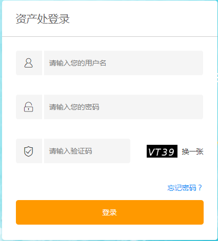 点击右上角院所管理,选择“资产处登录”,输入用户名、密码以及验证码后即可。