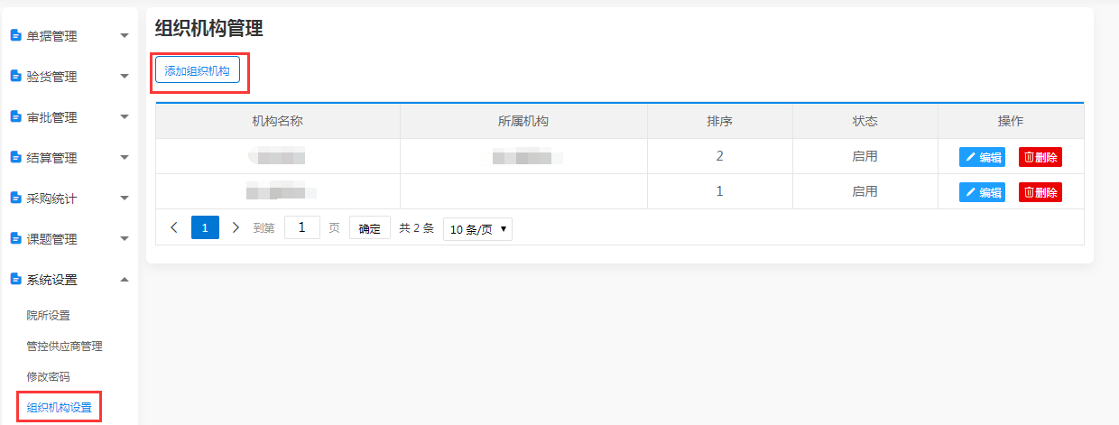 点击“系统设置”-“组织机构设置”-“添加组织机构”来添加名称