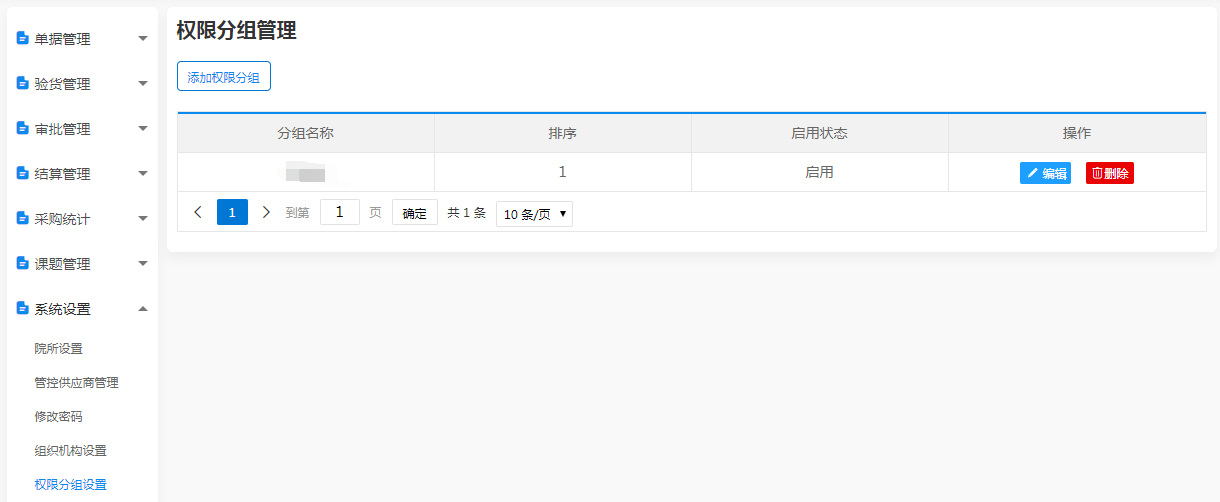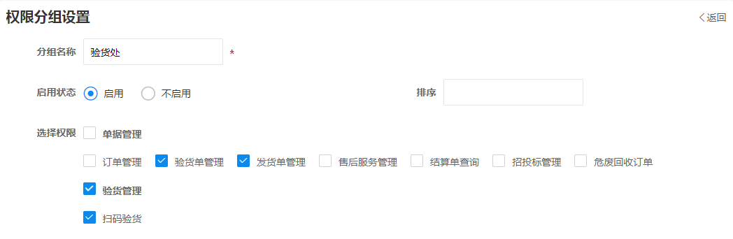 当院所用统一验货方式时,需针对验货人员账号为其分配权限,那么权限分组名称应为“验货处”或“验货员”