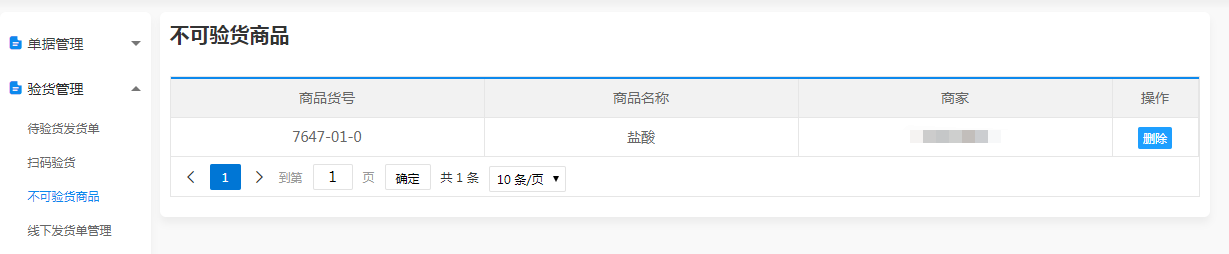 不参与统一验货的商品可在“不验货商品”中查询,删除后该商品重新列入统一验货范围内。该操作会对未验货发货单产生影响。