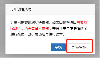 会员和商家协商价格优惠,可以提交订单后选择“暂不审核”,页面会自动跳转至会员中心——订单管理——我的订单中,展示当前的订单;