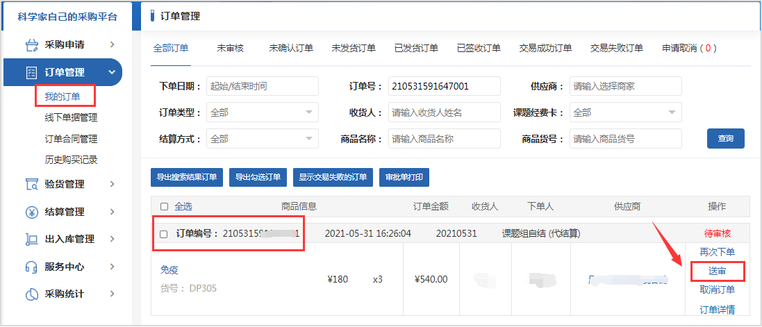 会员待改价完成后,可进入到会员中心——订单管理——我的订单,核实订单价格,然后进行审核/送审步骤。